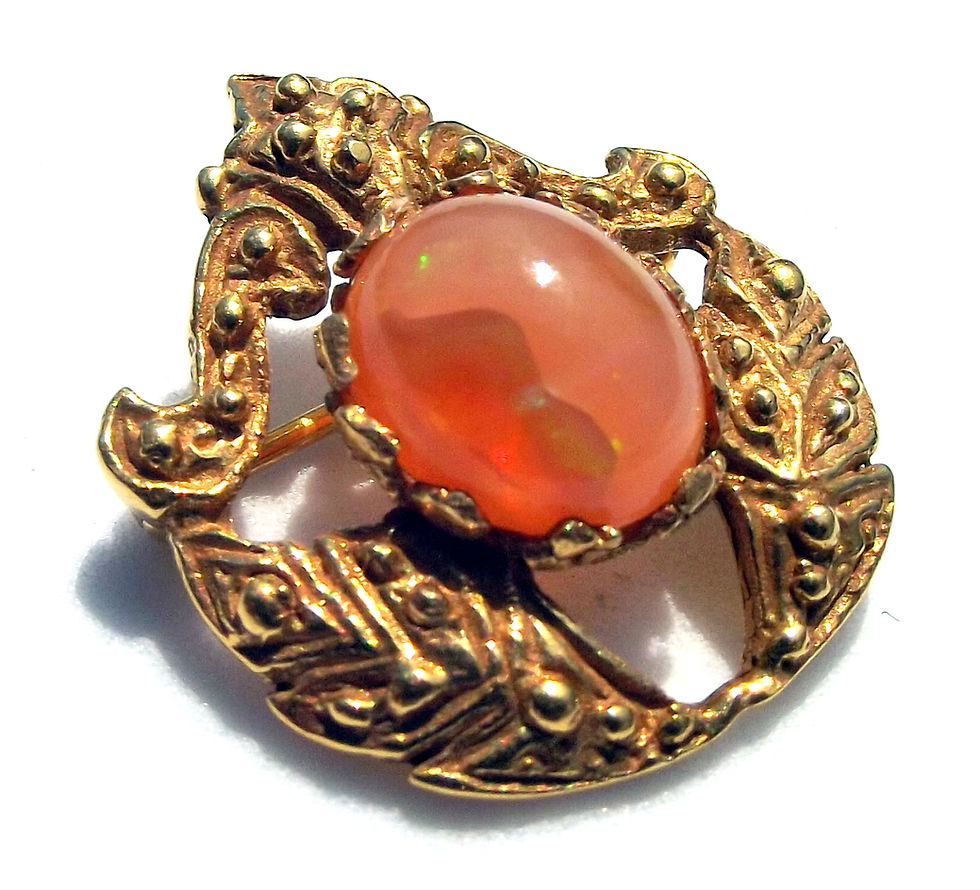 Vintage 14K 585 Gold Fire Opal Brooch Pin